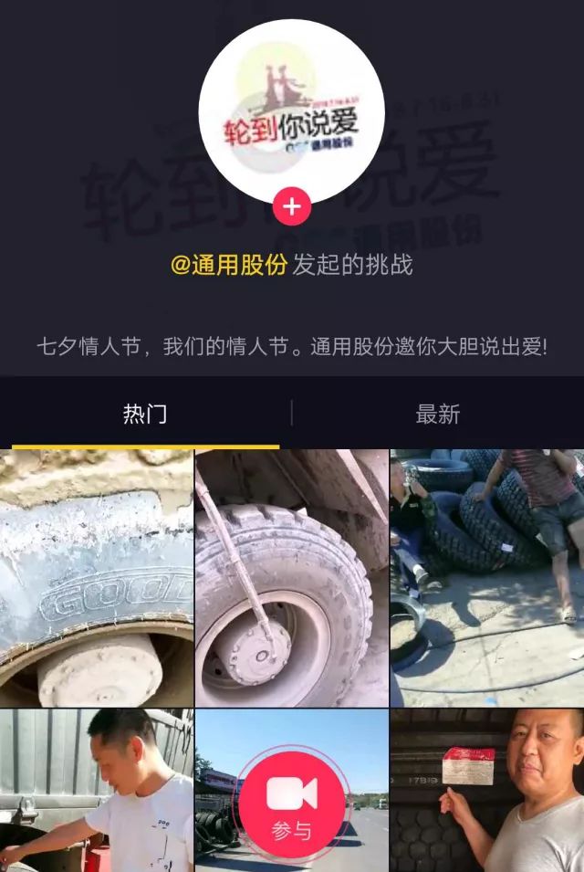 線下活動豐富多樣,線上互動亦是精彩紛呈。今年的七夕愛購月在傳播渠道上也大有不同,除了傳統的門店促銷活動以外,創新采用線上線下聯動模式,在抖音小視頻發起“#輪到你說愛”話題挑戰,為消費者提供一個盡情展示風采、表達心聲、傳遞“愛”的祝愿平臺,讓廣大司機用戶成為主角,用真實的用戶體驗為通用股份品牌代言!七夕愛購月期間,歡迎廣大司機朋友們到店咨詢、參與小視頻活動、享受購胎優惠!