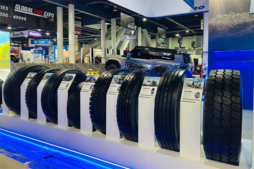 在商用車領域,通用股份同樣展現了深刻的市場洞察。針對北美復雜的物流環境,千里馬(CELIMO)的中長途系列CTL20、CAL20、CLD01,以及喜達通(TBBTIRES)的THA20、THD22、HD1等多款產品,為高效運輸提供了堅實保障。其中,為混合路況拖車輪位設計的TMT50輪胎,憑借其先進的抗刺扎和抗切割配方,將耐久性提升至全新高度;而專為中長途運輸設計的全輪位輪胎CAL20,則以其全能表現和低碳高效,成為貫穿全場的明星產品之一,彰顯了通用股份在商用車輪胎領域的專業深度。