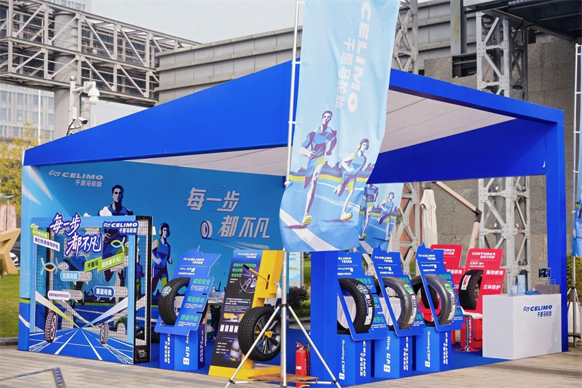 賽場之外,千里馬輪胎精心打造的品牌互動區(qū),則成為了另一片人潮涌動的焦點。在科技感十足的藍(lán)色展臺中,一場沉浸式的感官盛宴正等待著每一位訪客。